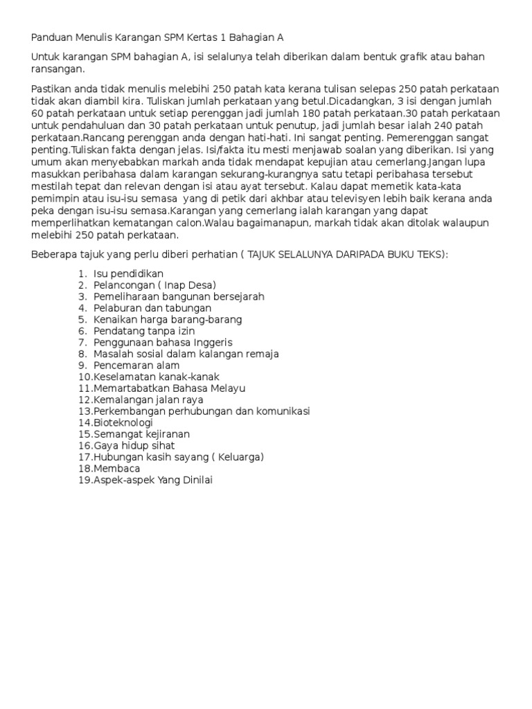 Panduan Menulis Karangan Spm Kertas 1 Bahagian A