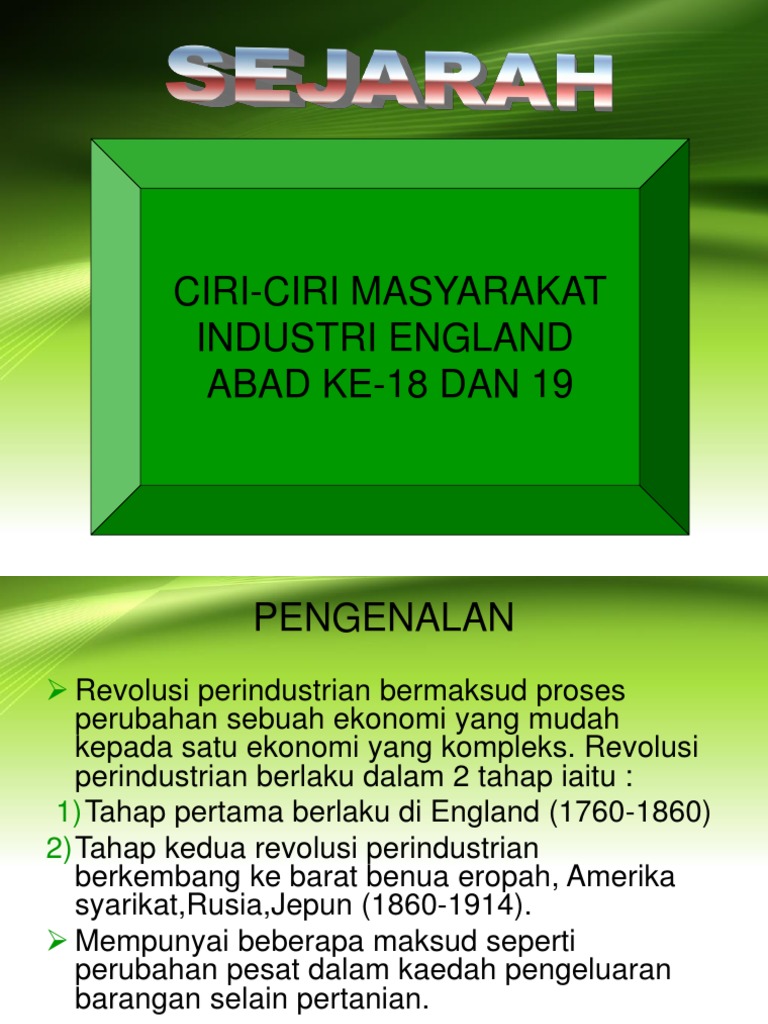 Ciri Ciri Masyarakat Industri Di England Pada Abad Ke 18 19