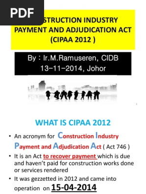 Construction Industry Payment And Adjudication Act 2012 Act 746 Cipaa Quantity Surveying And Construction Cost Consultancy Practices Bachelor Of Quantity Surveying Hons