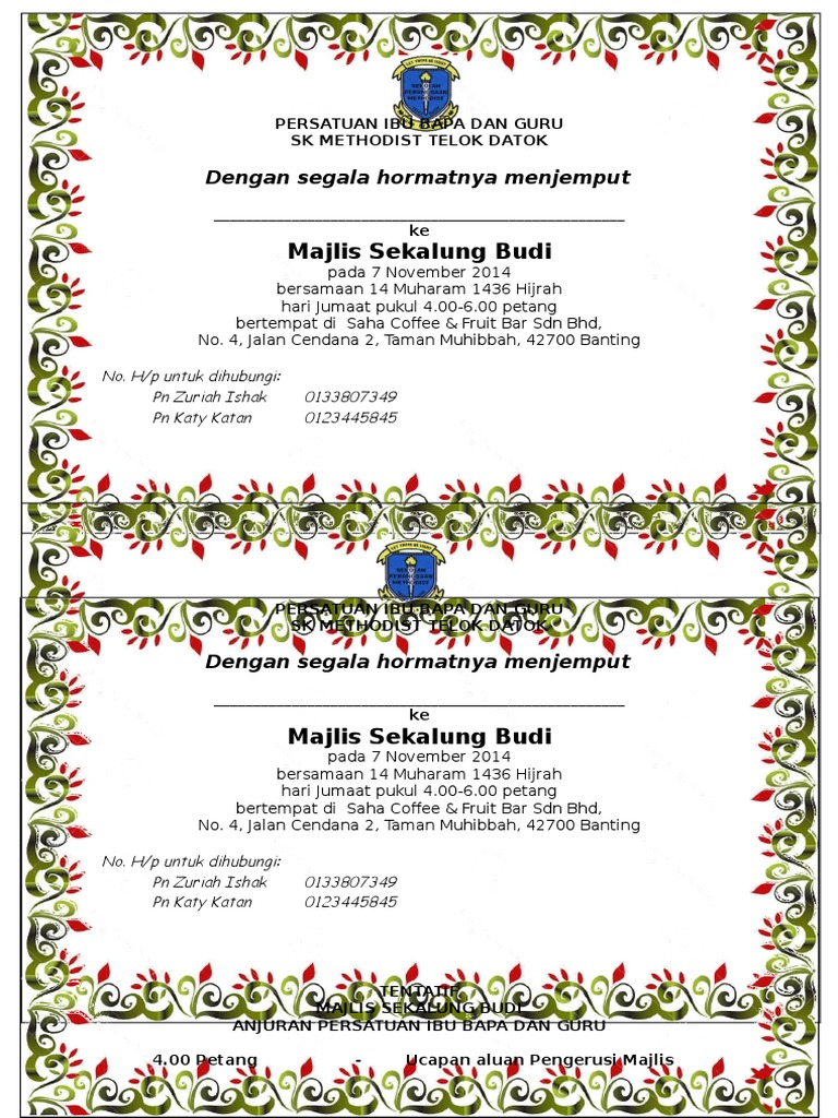 Contoh Surat Jemputan Ke Majlis Perpisahan Guru