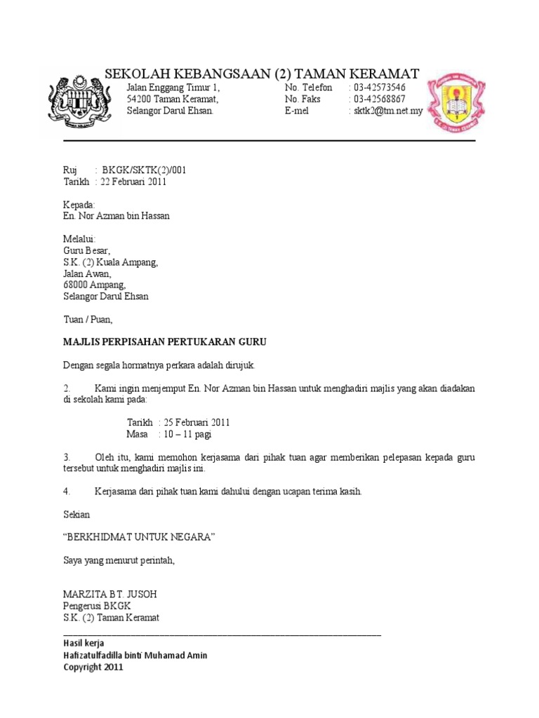 Surat Jemputan Jamuan Perpisahan Pdf Document