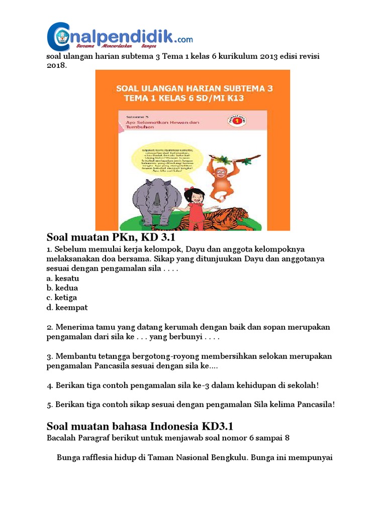 Soal Kelas 6 Tema 2 Subtema 1