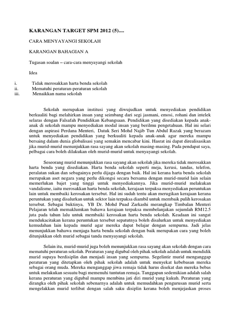 Karangan Spm Bahagian A Cara Cara Menyayangi Sekolah