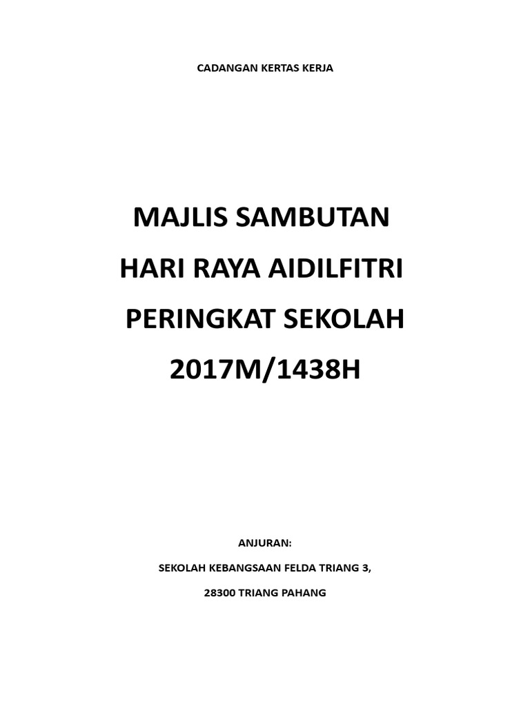 Kertas Kerja Sambutan Hari Raya Aidilfitri Peringkat Sekolah