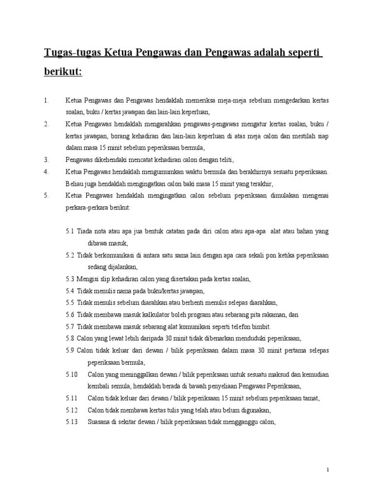 Tugas Ketua Pengawas Dan Pengawas