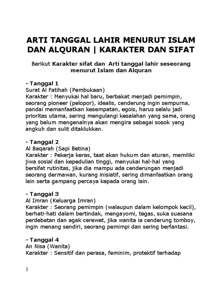 Arti Tanggal Lahir Menurut Islam Dan Alquran Karakter Dan Sifat Pdf Download Gratis