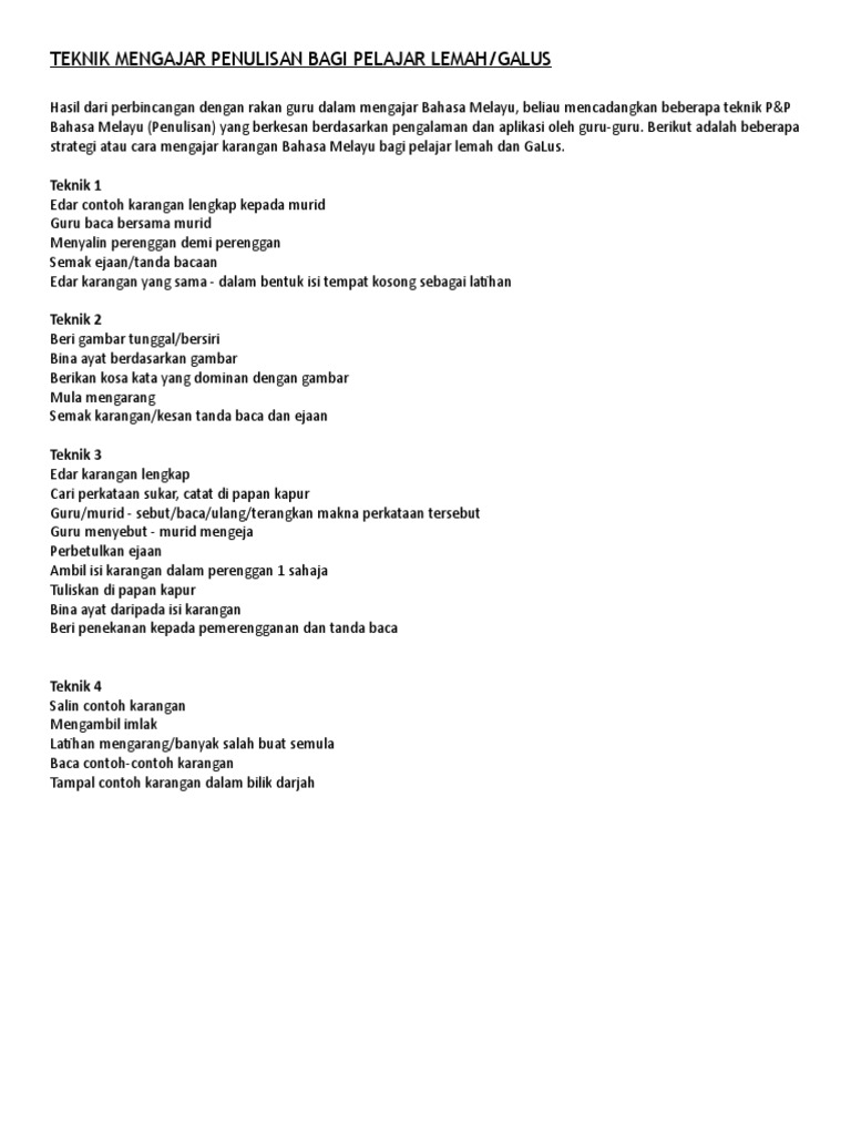 Teknik Mengajar Karangan Untuk Pelajar Yang Lemah