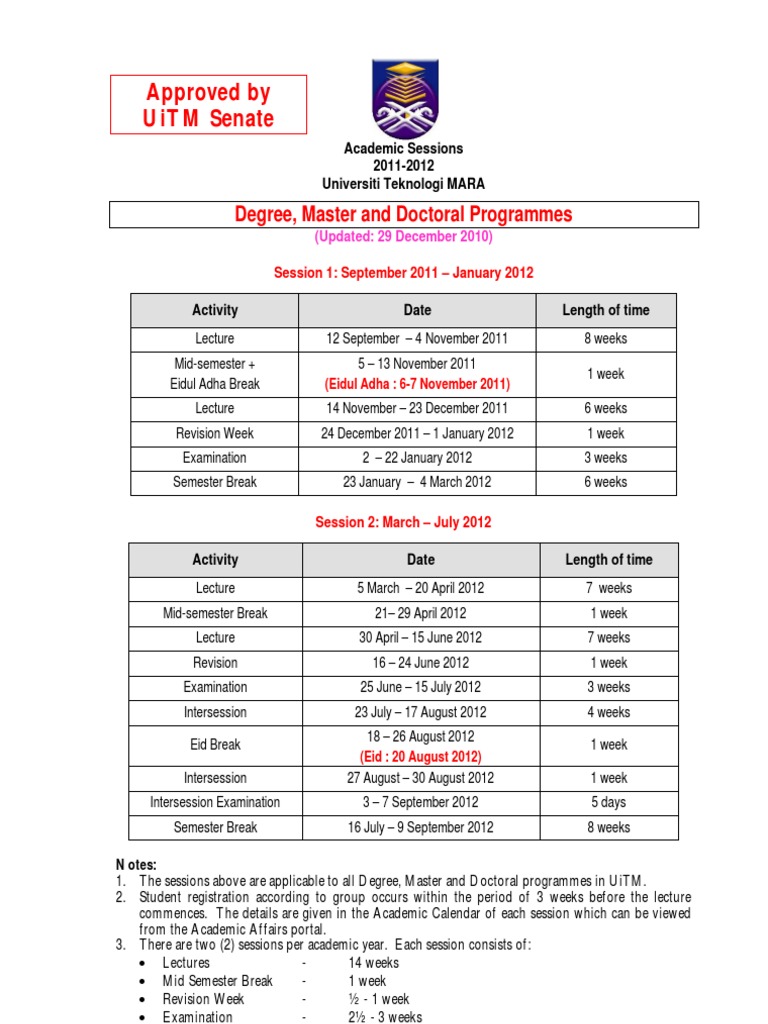 Academic Sessions 2013 2014 Approved By Uitm Senate I Pdated 6 February 2013 Q Universiti Teknologi Nara Academic Sessions 201312014 Pre Diploma Course Hero